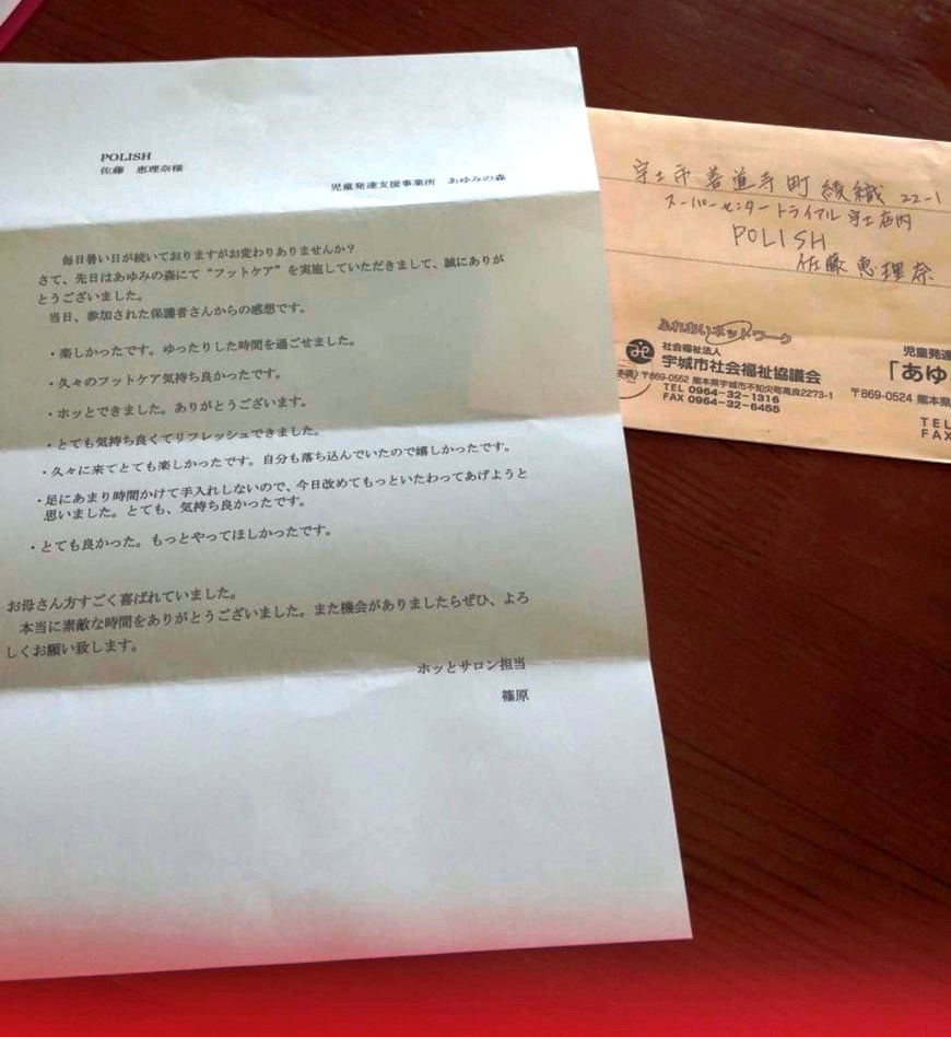 先日講師で行ってきた✨あゆみの森🌴さんからの感謝のお手紙をいただきました😊